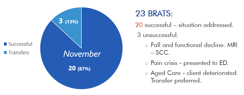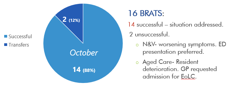 The BRAT framework supports a holistic approach, as it recognises that crises or acute changes do not always require medical input to resolve the situation. The issue/concern and the clients/carers ‘goals of care’ are the primary consideration when the BRAT attend.